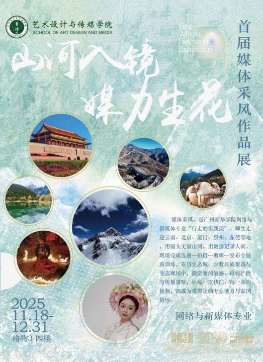 山河已入镜,媒力正生花!当像素化作笔触,当快门定格呼吸,一场关于山河的青春叙事正在上演。自11月18日起至12月31日,由艺术设计与传媒学院网络与新媒体专业举办的“首届媒体采风作品展”在格物③四楼正式开展!